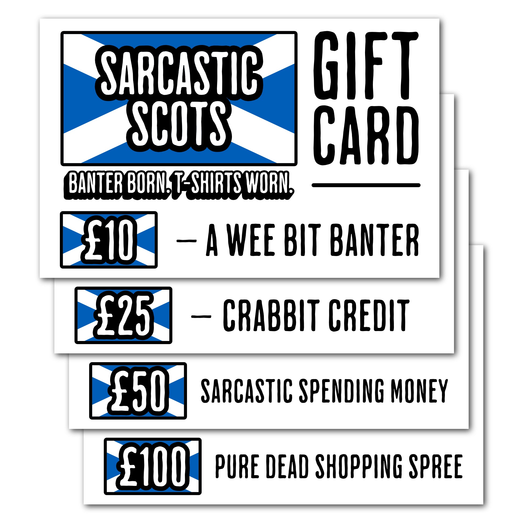 Let them choose their own banter with a Sarcastic Scots Gift Card. Delivered instantly by email.