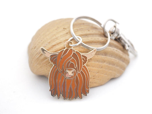 Highland cow enamel pin and/or hard enamel keyring. Scottish highland cow gift set.