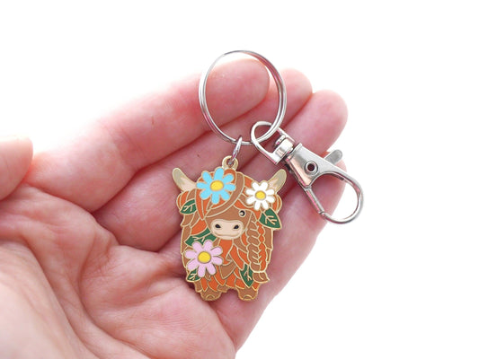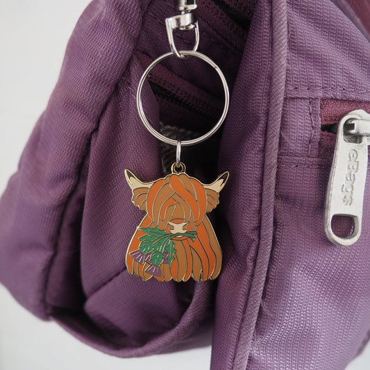Highland Cow Thistle Enamel Keyring